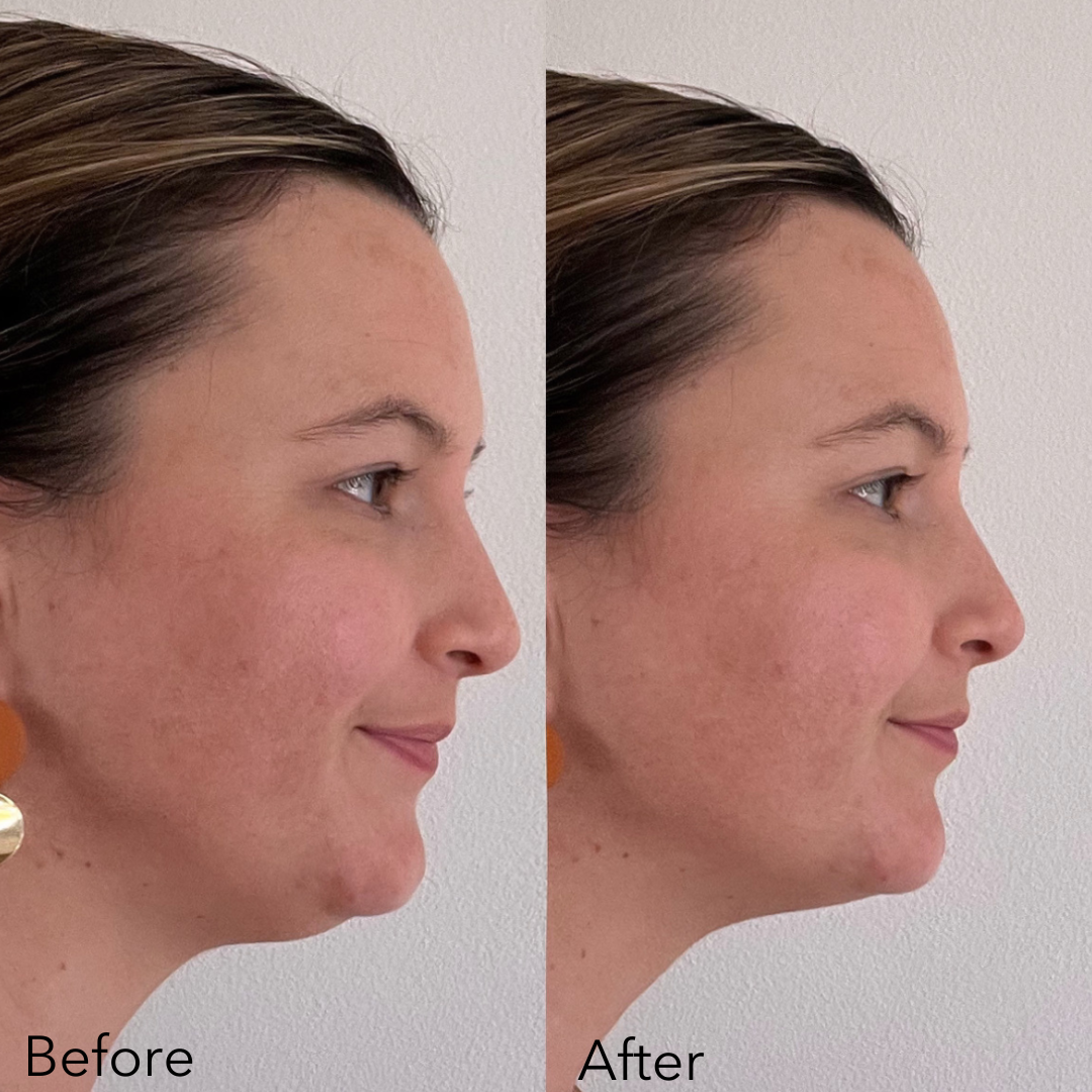 Our Advanced Dermal Sculpting Masks comfortably loop around your ears and compress the lower face. As you wear it, your skin absorbs the powerful lifting complex to help create a more defined jawline.