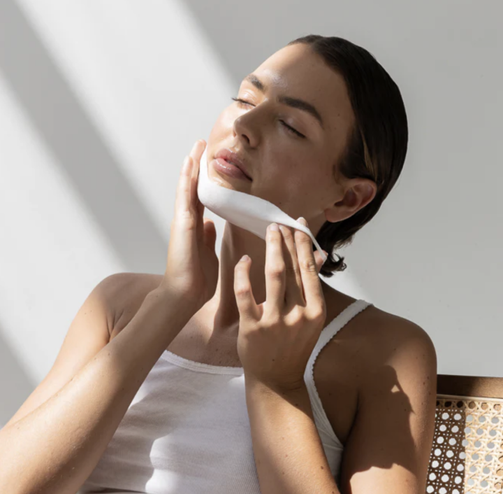 Our Advanced Dermal Sculpting Masks comfortably loop around your ears and compress the lower face. As you wear it, your skin absorbs the powerful lifting complex to help create a more defined jawline.