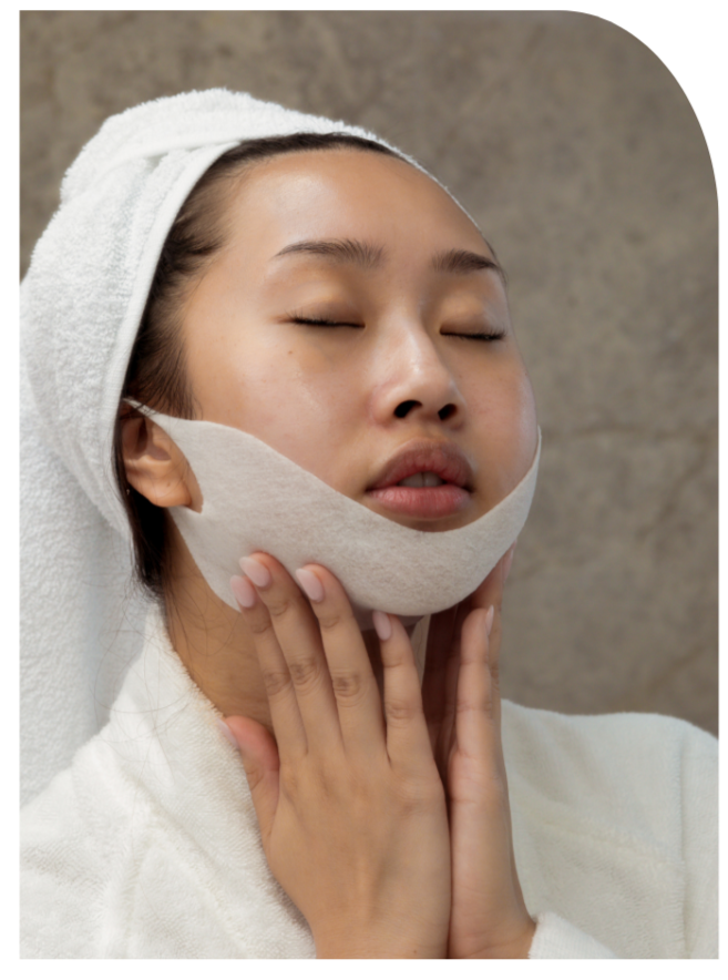 After three months of consistent use, the Advanced Dermal Sculpting Mask delivers its full potential. Hydrolysed collagen peptides and hyaluronic acid work together to increase collagen production by up to 40%, which helps firm and lift the skin along the jawline. Hydroxyacetophenone plays a critical role as an antioxidant, protecting newly formed collagen from degradation and reducing inflammation that can lead to sagging. Adenosine and peppermint oil continue to relax the jaw muscles, reducing tension and preventing the formation of wrinkles, giving the face a more sculpted and contoured appearance. With up to a 25% improvement in overall firmness and definition, the jawline looks significantly more toned and lifted.